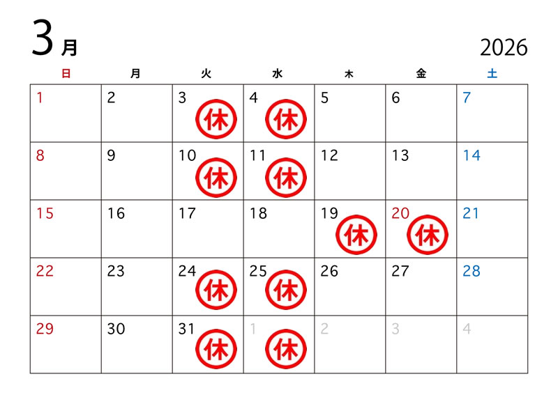 | 定休日 | 不定休 |